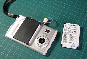 元の内蔵バッテリは薄いシート状のLi-ionで、同じ物は市販されていないようです。(これより厚くてサイズもやや大きいものをデジットで多量に見掛けたのですが、使うのにイマイチ気乗りがしませんでした)