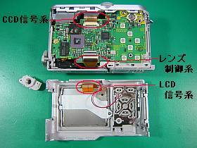上が「CCD信号系」、中が「レンズ制御系」、下が「LCD信号系」。(コネクタの位置は中と下が逆)