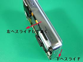 また、基板を抜き出す時、下側のクレードル接続端子が引っ掛かって抜け難いので、ここを押し出すようにして抜き出します。(左上写真<クリック>で)