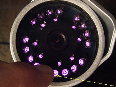 後で、赤外投光器内蔵の看視カメラ(ジャンク)があったことを思い出して、これで、夜間照明の小実験をしてみた。(図5)