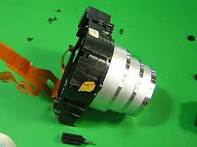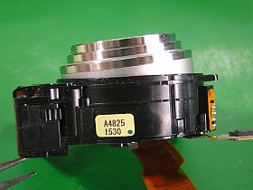 正常動作品を前から注視していると、電源を入れた時レンズ筒が前に伸びて来ますが、それと同時に、この“内レンズ”が光軸線上に押し込まれて来ているようです。