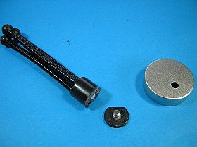 材料は、フレキシブル・スタンド(蛸足/火星人?)の頭から切り出した「留めネジ」と、探し回って見付けた外径42mmの「ビンの蓋」