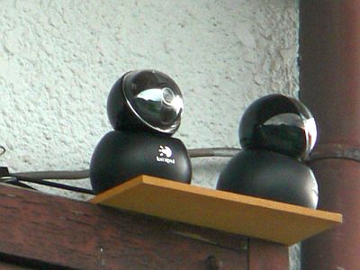 前に試して、“空(域)”の眺望には物足りない「Qcam V-UCC22」(“タドン重ね”)なのだが、折角買ったものなので、もう少し使ってみようと、2台を並べてみた。(図1)