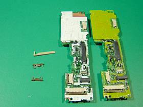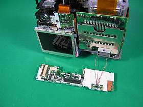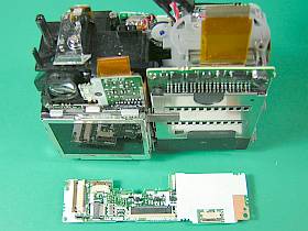 その結果は、“最初の不良品”の組み合わせが、一番まともでした!(シャッタとズームが利かないだけで、表示は出る。そして、後で買った他の基板類は、絶不調!それもそのはずですね...)