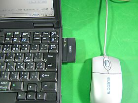 これのLAN接続には、PCMCIAカードの有線100Mbpsを使っているのですが、これらの出っ張りがかなり邪魔になっていました。(左写真<クリック>)