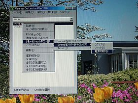 この遠隔制御に、M.Ogawaさんの「Wake up On Lan Tool」を使わせて頂いたら、至極簡単に、上手く行く事が分かりました。(左上写真は、メニューの例) 感謝!<(_"_)>