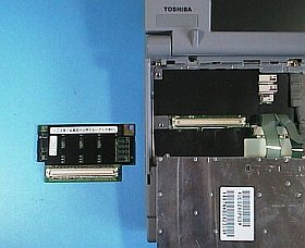 (左/上写真、<クリック>で、メモリを装着した状態)