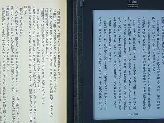 ハードカバー本と比べてみると、「文字の大きさ」はほぼ同じで、「反射率」も良いし「コントラスト」も十分!(図5、図6<クリック>)