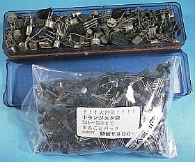 あーぁ、また使いもしないのに特価袋入りトランジスタ群(\300)を買ってしまった。("買ってしまった!"と、つぶやきながら渡すと、店員さんもニヤリ)