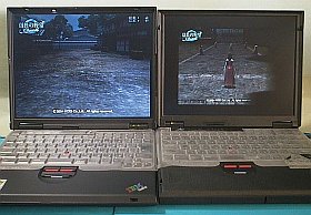 先回のテストでは、T23は元のWinXPのままでDirectX9.0を載せて走らせたが、Win98DirectX8.1bではどうなるか興味があった。それで、HDDを入れ替えて再度トライ。