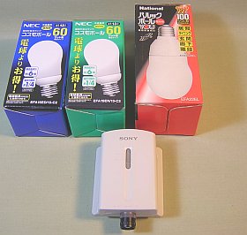 (左写真、左側の2灯、NECコスモボール\400/灯税込。右側のは以前買ったNationalパルックボール電球色で、確か千五百円位(?)だったはず)