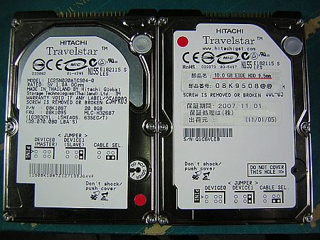 左写真は、どちらもロックの掛かったHDDで、鋭意(開錠に?)取り組み中だが、右側のHDDは表記の通り10GBだとばかり思い込んでいた。
