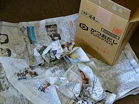 その点、古新聞紙を適当にくしゃくしゃにして、詰めて下さっているのは、有り難い!(緩衝機能も十分だし、扱い易い)