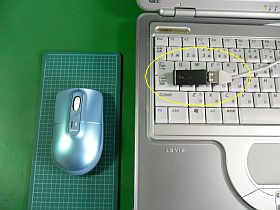 メイン機(今は、LaVie LL700/5D)だと、USB端子が右後奥にあるので、右手操作では問題無いが、マウスを左側に置いて左手で操作したい時には、スチール机上ではかなり苦しい。(微弱電波の到達範囲外になって、マウス・カーソルが動かなくなるってこと)