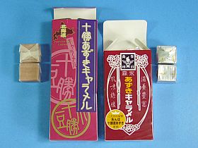 実は、以前北海道をバス旅行した時、(自分への)お土産として買った中の、大変気に入っていた「十勝あずきキャラメル」と、比べてしまったわけ。(左写真&<クリック>)