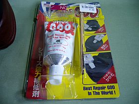 探してみると、以前に買った補修剤ShoeGoo(\1,260税込)があり、まだ沢山残っていました。(左写真)