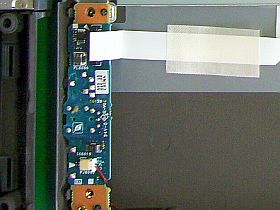 表示不良の原因は、LVDSコネクタ部で線が切れ掛かっているためでしょう。(が、ここの修理は、まず無理!左上写真<クリック>)