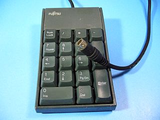 今、偶々、プラグがPS/2型のテンキーしかないし、これが使えるノートPCは次第に数少なくなって来ていますので、汎用的にするにはUSB型に出来ればよかろう!と、別途実験用にジャンクのテンキー(FMV-NTKB1A)を買って来ました。(左写真 \10税込み)