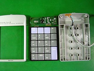 先に(↓)、“PS/2型テンキーが不良だったので、USB化に失敗した”と思ったのですが、再度活きているPS/2型(サンワサプライ Mobile TenIII \2,300?)でトライしてみました。(左写真)