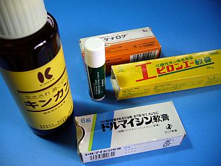 結局、自分の皮膚の炎症は、「自己治癒力」で治すべしと考えて、物は試しと、夏場“蚊刺され”に使う「キンカン」を塗りつけてみました。(左写真)