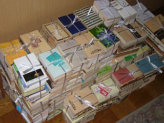 で、決断して処分を始めましたが、出るわ出るわ!文庫本だから、一区画に2段6組重ねの箇所もあって、量が多く作業が大変!