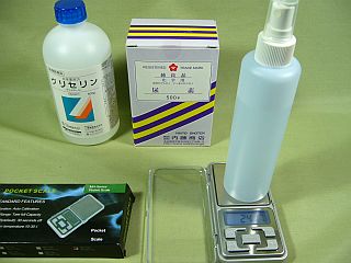 親達には、一応参考本と薬局で買った試薬を渡して来たのですが、自分でもやってみなくては!と、近くの薬店で「グリセリン」(\980/500g)と「尿素」(\798/500g)を買って来ました。