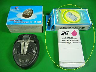 仮宿で使っていた「ジャンクの簡易型充電器」の調子が悪くなって、充電が出来なくなって来たので、次のものを物色していたのですが、思い切って、ネット・オークションで最安値だった「3G」(商務萬能座充)とかいうのを買ってみました。(左写真右側 \800送料込み)
