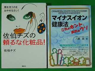 『佐伯チズの頼るな化粧品! 佐伯 チズ著 講談社 2005年2月 10刷 \1,300+税』 & 『マイナスイオン健康法 八藤 眞著 メタモル出版 2002年1月 1刷 \1,200+税』 (どちらも購入\105円税込み)