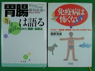 『胃腸は語る 新谷 弘実著 弘文堂 平成10年7月 1刷 \1,800+税』 & 『免疫病は怖くない 西原 克成著 同朋社・角川書店 1999年6月 1刷 \1,900+税』 (いずれも購入\105税込み)