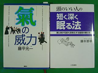 『「気」の威力 藤平 光一著 講談社 1991年3月 7刷 \1,200税込み』 & 『短く深く眠る法 藤本 憲幸著 三笠書房 2005年8月 1刷 \1,300+税』 (いずれも\105税込み)