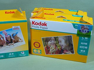 ところが、傑作な話で、今回は箱毎には値札が貼ってなくて、棚の横に「Kodak インクジェット・プリンタ用紙 特価780円」という大きな看板!があっただけ。(その写真を撮り損ねた!左写真&<クリック>は、昔&今の箱の裏側)