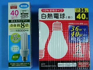 しかし、『百均ショップ』もなかなかやりますねぇ!百五円で、「電球型蛍光灯」を売れるようにするなんて!これこそ、“原発低減≒?電力消費低減運動”の実行動例だ!と感心しました。(左写真の左側)