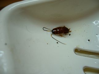 一番参考になったのは、名古屋市役所の「身の回りの『むし』たち-web昆虫図鑑-」で、そこの写真類を拝見すると、どうもこれは、“ゴキブリの幼虫”ではないかと。