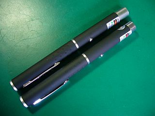 これは、鳩の目は赤いが、もしかして、赤の反射率が高く[赤光]をあまり感じないのではないか?と推測したので、それでは[緑]を使ってみようと、2種買ってみた。(左写真 左上:1mW\690送料込み、右下:5mW\924送料込み)