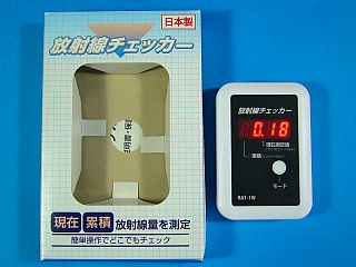 で、もう少し身近に感じてみようと、(新古品の)「放射線チェッカー」(高森コーキ製RAT-1)なるものを買ってみた。(左写真 \640送料込み)