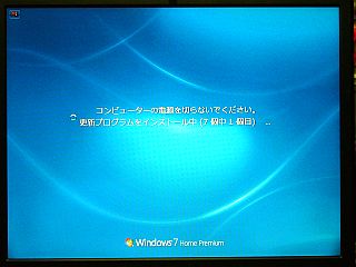 就寝直前に始めた“更新(UpDate)”が、眠いのに、なかなか終われない...「電源を切るな!」って、何時終わるのか分からないままで、終わらせてくれないのだ。(左写真 泣)