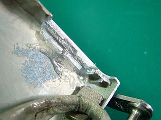 接着面を調べてみたら、丸で離型材を塗ってあったような面(図5)だし、ヒンジ側の金属面(図6<クリック>)はテカテカ!...へ?