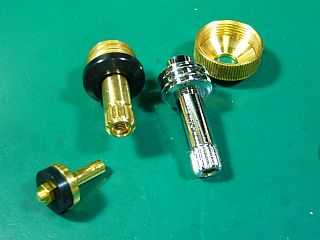 「栓金具」は、「水まわり 補修パーツ」として、真鍮製とメッキ品の2、3種があった。(真鍮製:約\270税込み、メッキ品:約\340税込み)