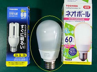 実は、昨年の暮れまでは、「東芝 ネオボール EFA15FL/11-E」というのを使っていたのだが、これが(今では)大変ユニークな点灯の仕方なので、来たお客が困るだろうと思ったから。