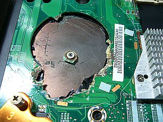 (まぁ、廃棄の証として、筐体外からドリル刃でHDDをぶち抜いたジャンク群を見掛けたことはあるが、こいつは単なる“非公式の発作的な処置”ではないか?笑)