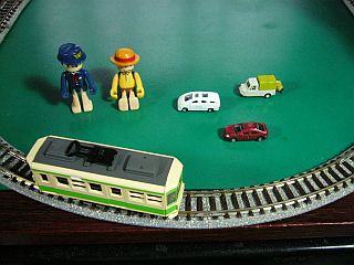 Bトレイン・ショーティの市電3個を買い(\1,573送料込み)、その一つにKATO 動力ユニット11-104(\1,296税込み)を組み込んで走らせている。(図1)