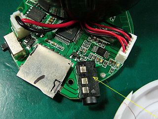 これは、後で本体底を分解してみて分かったことだが、「AUX/DC5V」の「ジャック」には「芯」が無いし「電極部」も無い。有るのは、側面の舌片群だけ。(図3)