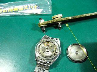 幸いこれは、「裏蓋スパナ」で廻して開けられるタイプだった!
