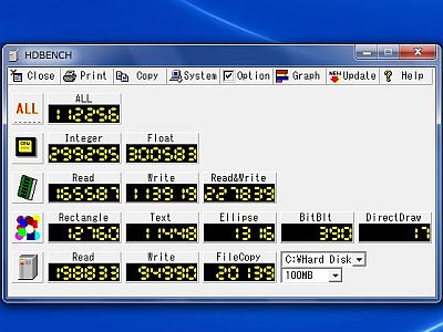 「HDBENCH」でみた結果は、やはり、かなり高速のはず(!?)だと出た。(図3)