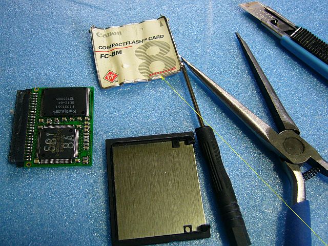 CFによっては、上カバーを両面テープだけで留めてある物もあるので、そんなのを選べば良かったのだが、今回は運悪く(?)、(デジカメ用として)頑丈に造ってあるものを、うっかり、選んでしまった結果だ。