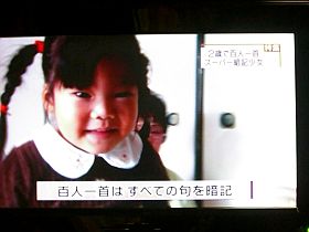 このお嬢さん2歳だそうですが、「世界の国旗」、「四字熟語」、「ことわざ」、「百人一首」などそれぞれ100個以上憶えているそうで、すごいですね! ・・・ と感歎しましたが、むしろ凄いのは家族の方でしょう!