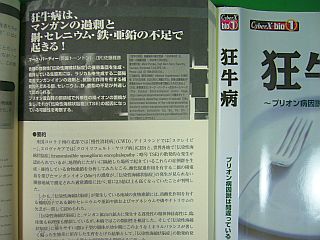 狂牛病/BSEなどは、“(未だに発見出来ないウィルスによる)伝染病”だと思っていたのですが、どうやら違うらしい!マンガン・イオン/Mn++の過剰摂取と、その悪影響を抑制出来る銅/Cu、鉄/Feイオンの不足と(の組み合わせ)が主因のようです。