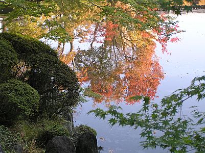 「和歌山城址」の「西ノ丸庭園」は、「八幡平」とは違って周りが紅葉で埋め尽くされるといった風景ではないが、処々に巧みに配置された木々が色付いていて、見映えが好い。