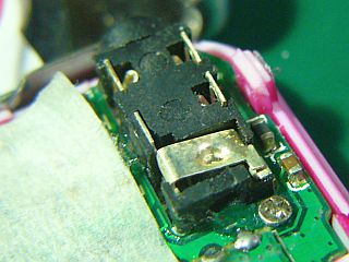 それは兎も角として、イヤフォンが使えない理由を探ったら、“端子電極の剥がれ”だった。(左写真)