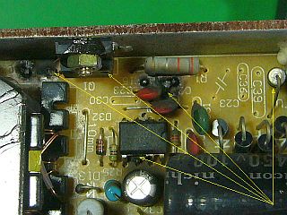 それにしても、1次側のヒューズは、一体何の役目なんでしょう?・・・ 抵抗が2個も焼け飛んだり、ACコードが熱々になるほど電流が流れてたのに、このヒューズ君、知らん顔のようでしたが、そんなのってあり?(左上写真<クリック>)